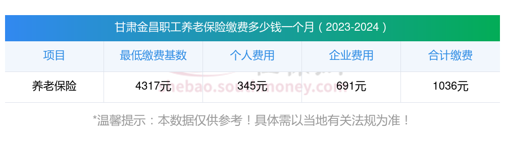 甘肃金昌养老保险缴费基数2023-2024年最新标准(最低)