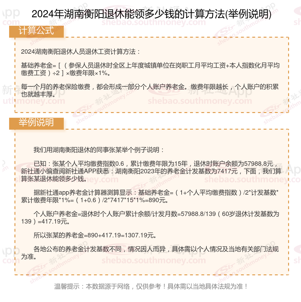 湖南衡阳养老金计算公式2024年计算方法(在线计算器)
