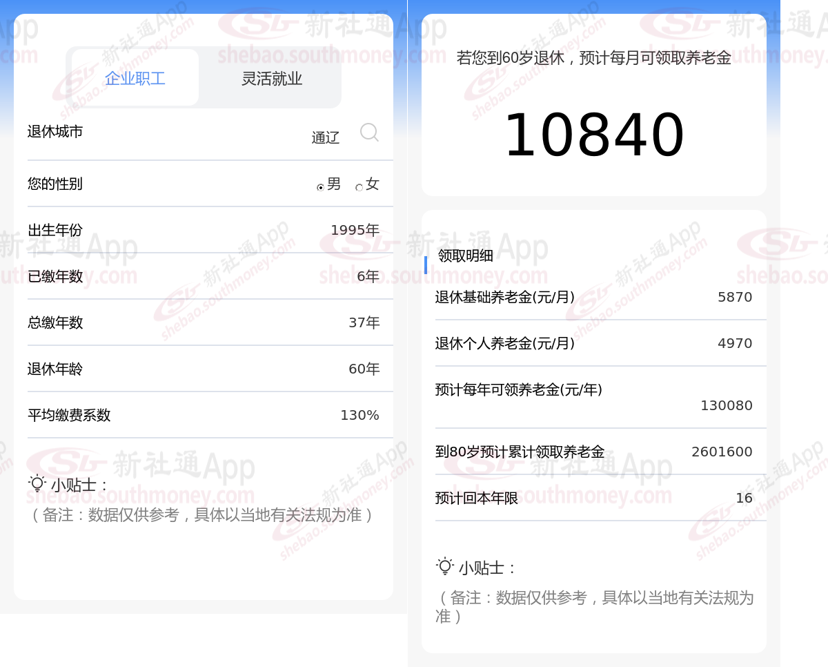 通过新社通APP-养老金计算所得:在保持退休城市、出生年份、退休年龄以及缴费系数这些条件不变的前提下,当个人的社保缴费年限累积达到37年时,其相关计算方式如下: