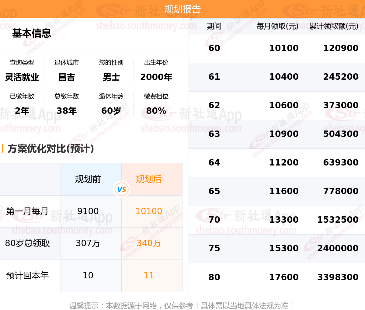 规划前:60岁约领9100元,新社通APP-养老金规划后:60岁约领10100元