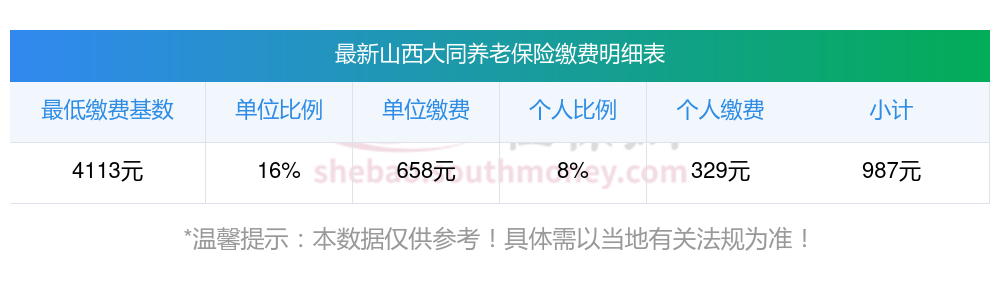 山西大同养老保险缴费基数2023-2024年最新标准(最低)