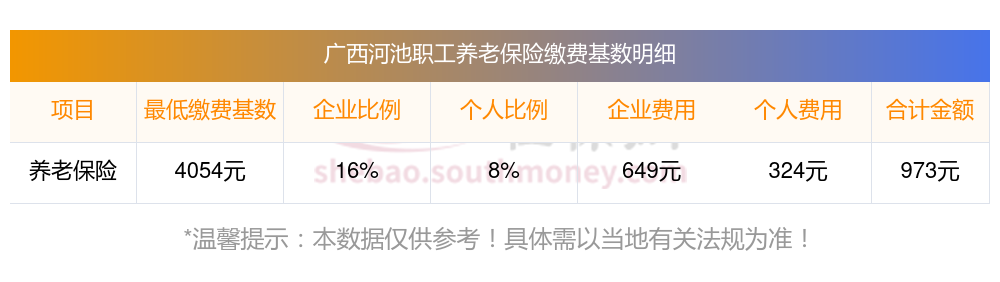 广西河池养老保险缴费基数2023-2024年最新标准(最低)一个月要交多少钱?举例说明