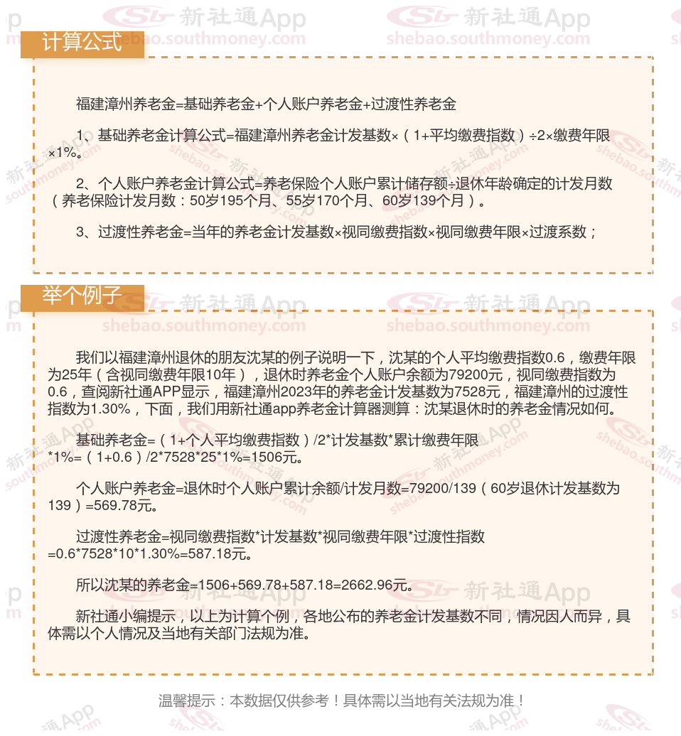 福建漳州养老金计算公式2024年计算方法(在线计算器)