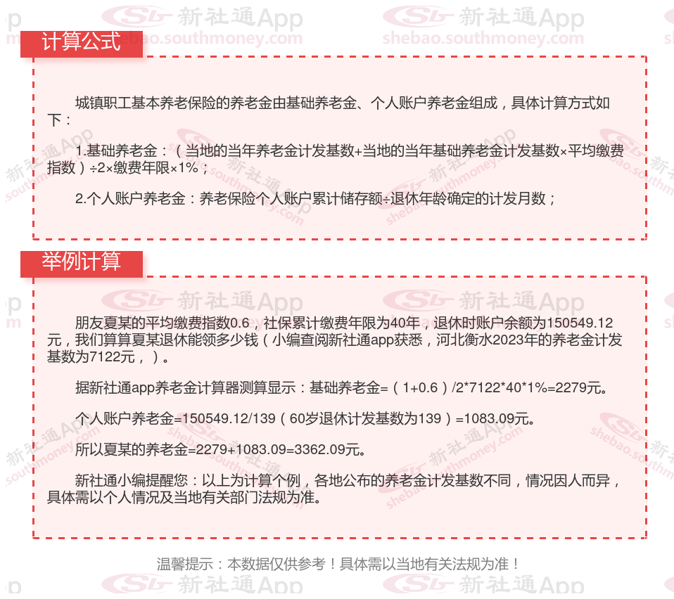 河北衡水养老金计算公式2024年计算方法(在线计算器)