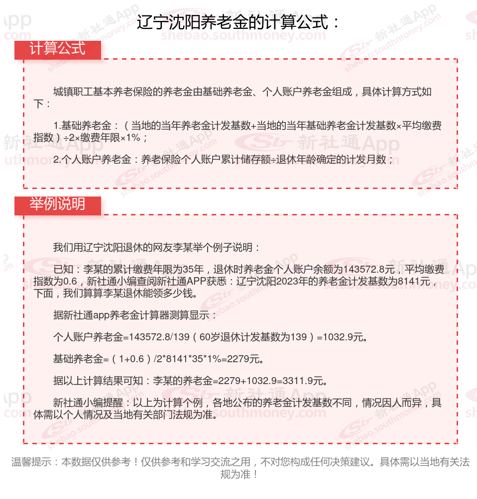 辽宁沈阳养老金计算公式2024年计算方法(在线计算器)