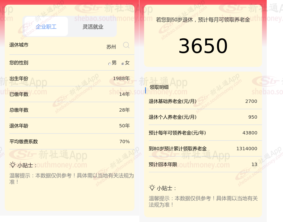 通过新社通APP-养老金计算所得:在保持退休城市、出生年份、退休年龄以及缴费系数这些条件不变的前提下,当个人的社保缴费年限累积达到28年时,其相关计算方式如下: