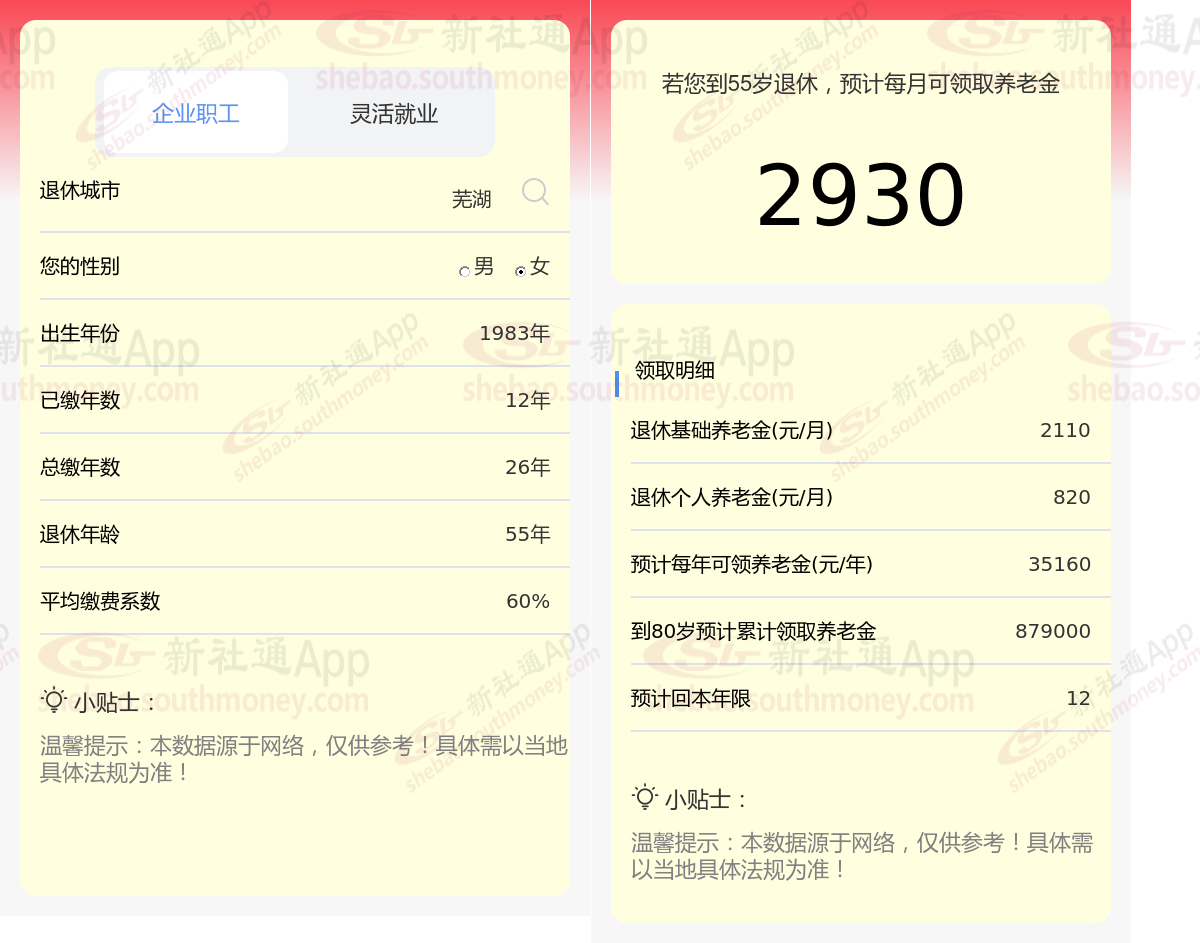 通过新社通APP-养老金计算所得:在保持退休城市、出生年份、退休年龄以及缴费系数这些条件不变的前提下,当个人的社保缴费年限累积达到26年时,其相关计算方式如下: