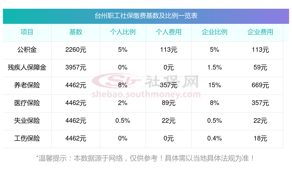 2024年台州社保缴费多少钱?下表是2023-2024年台州社保费用明细参考,新社通app-社保缴费查询工具提供的最新数据如下: