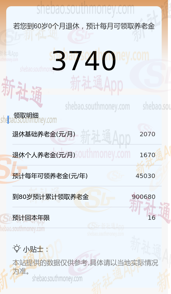吕某,作为一位勤勉的职工,他的养老保险缴纳记录长达15年之久,且缴费档次一直保持在较高的140%水平。基于这些关键数据,我们利用新社通app养老金计算器,结合最新的养老保险法规,对其养老金进行了如下估算:
