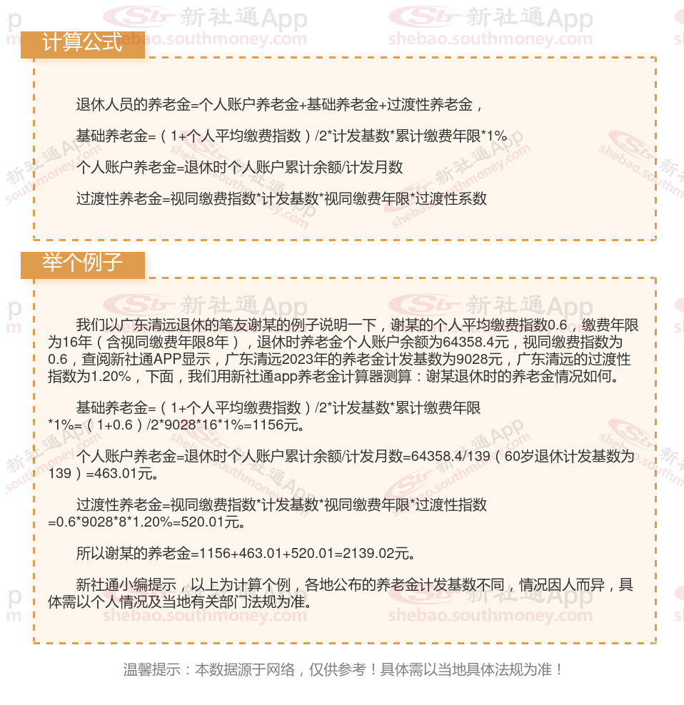 广东清远社保退休能领多少钱?(在线计算举例说明)