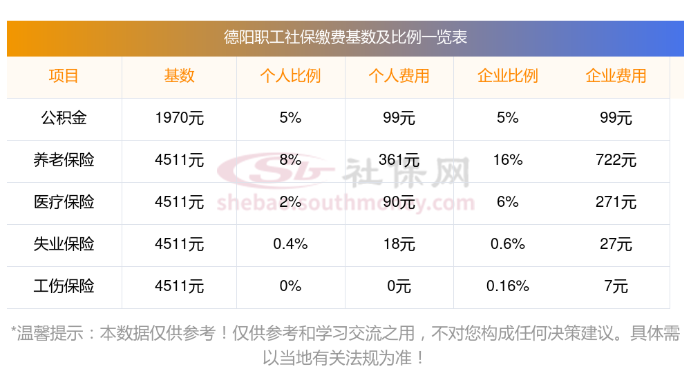 2024年德阳社保缴费多少钱?下表是2023-2024年德阳社保费用明细参考,新社通app-社保缴费查询工具提供的最新数据如下: