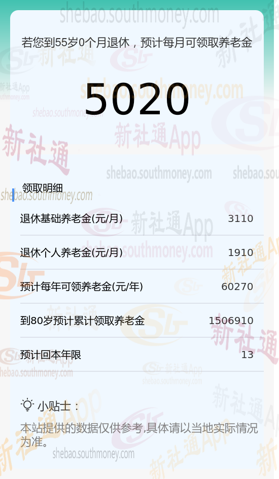 朱某,作为一位勤勉的职工,他的养老保险缴纳记录长达30年之久,且缴费档次一直保持在较高的150%水平。基于这些关键数据,我们利用新社通app养老金计算器,结合最新的养老保险法规,对其养老金进行了如下估算:
