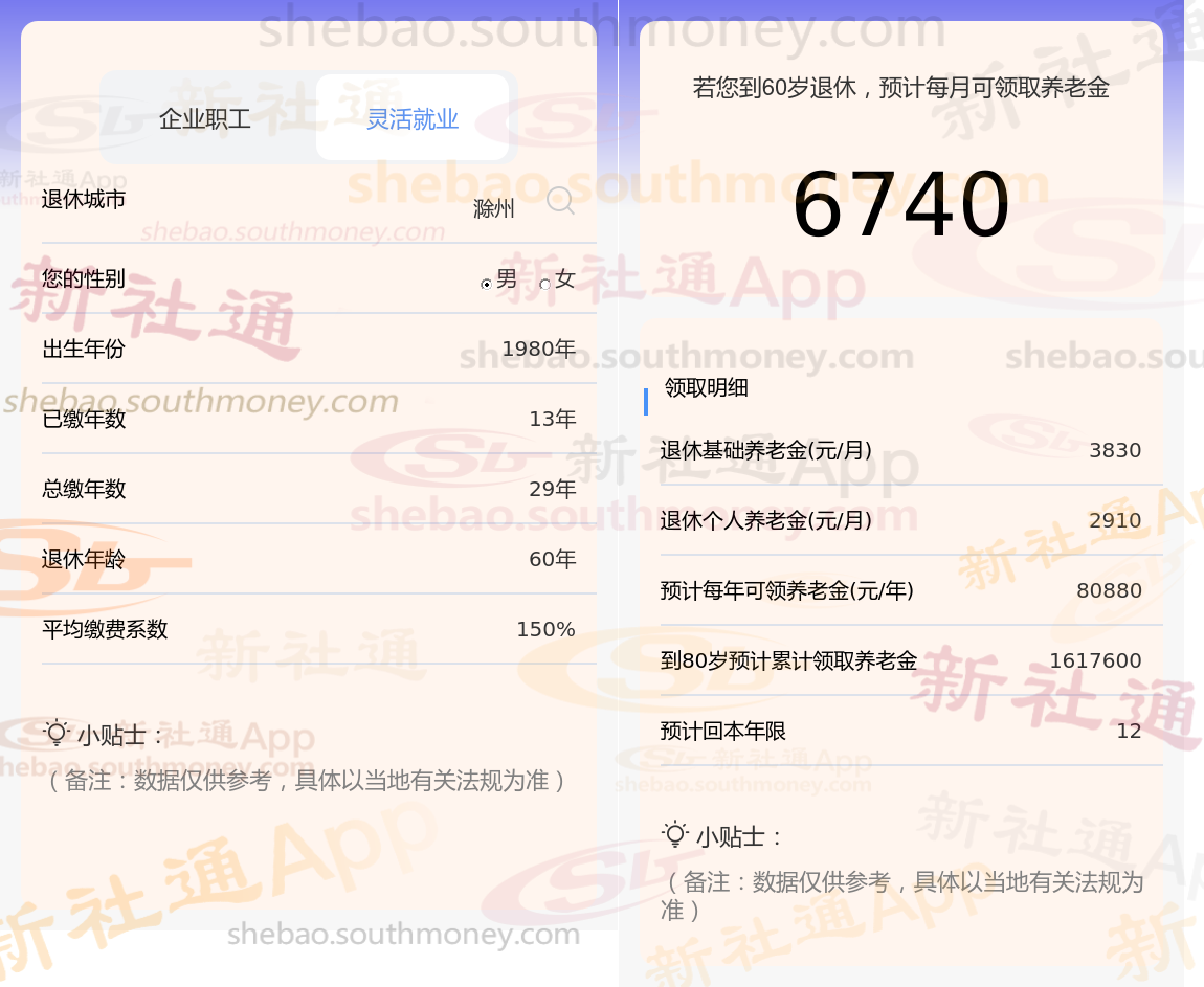 通过新社通APP-养老金计算所得:退休城市、出生年份、退休年龄、缴费系数都相同的情况下,社保缴费年限累计29年时,计算如下: