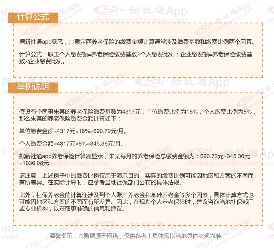 甘肃定西养老保险缴费基数2023-2024年最新标准(最低)要交多少钱一个月?