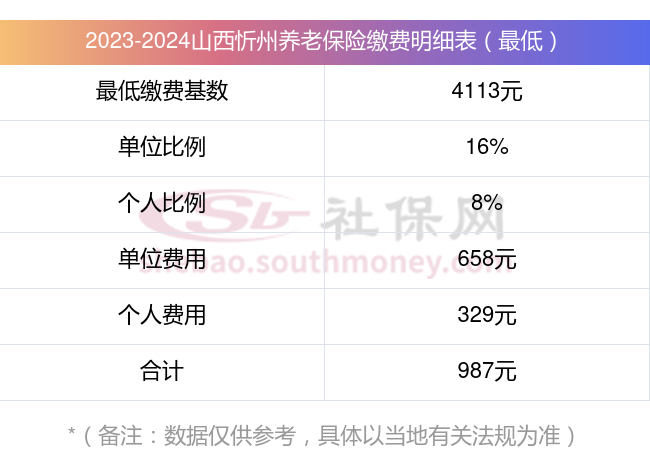 2023-2024年山西忻州养老保险缴费比例及基数标准(最新)