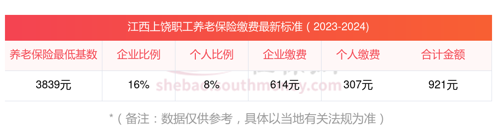 江西上饶养老保险缴费基数2023年最新标准(最低)