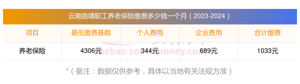 云南曲靖养老保险缴费基数2023-2024最新标准