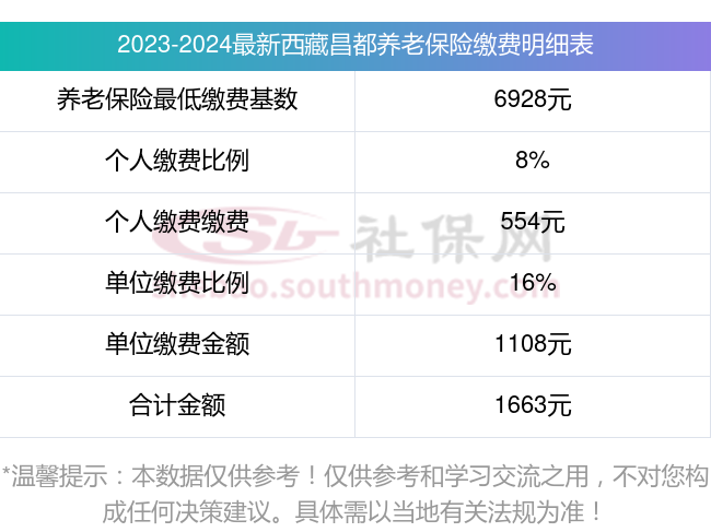 西藏昌都养老保险缴费基数2023-2024年最新标准(最低)