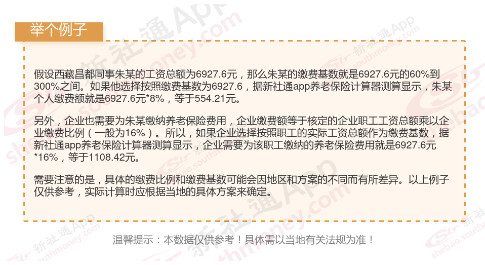 据新社通app获悉,一般情况下养老保险的缴费金额是根据当下的一个养老缴费基数来计算的。不同地区以及不同年份的养老缴费基数都是不一样的,每年都可以看到各地的养老缴费基数调整的消息。那么西藏昌都养老缴费基数究竟是什么?下面随新社通app小编一起来看看西藏昌都养老保险缴费比例个人和单位2024是多少!