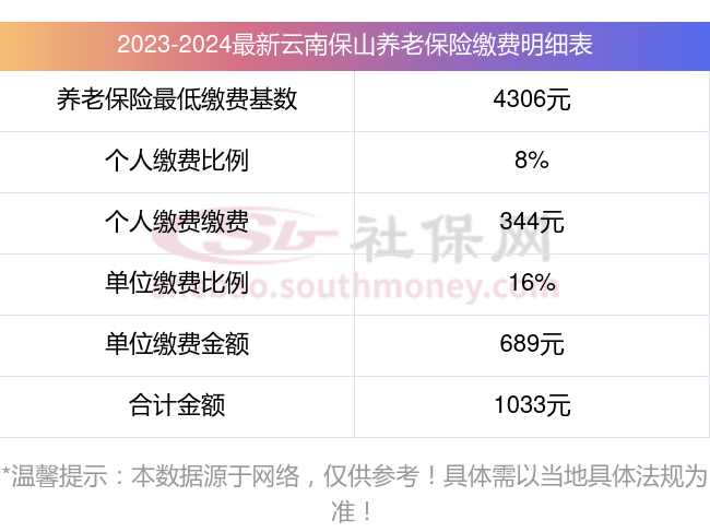云南保山养老保险缴费基数2023-2024年最新标准(最低)