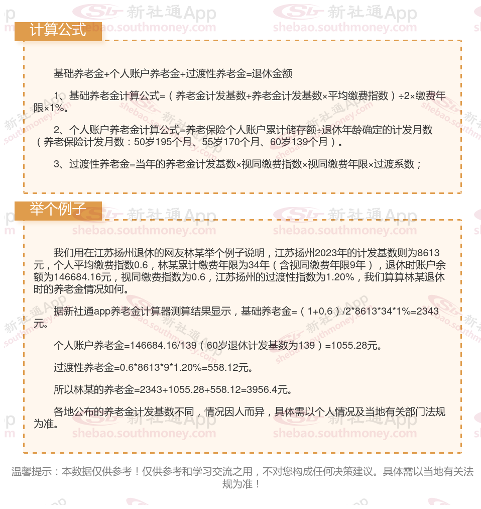 江苏扬州养老保险退休能领多少钱?(在线计算举例说明)