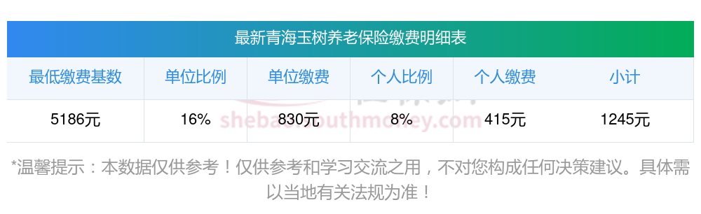 青海玉树养老保险缴费基数2023年最新标准(最低)