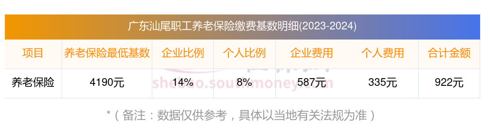 广东汕尾养老保险缴费基数2023-2024最新标准,一个月要交多少钱?