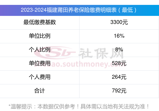福建莆田养老保险缴费基数2023-2024年最新标准(最低)一个月要交多少钱?举例说明