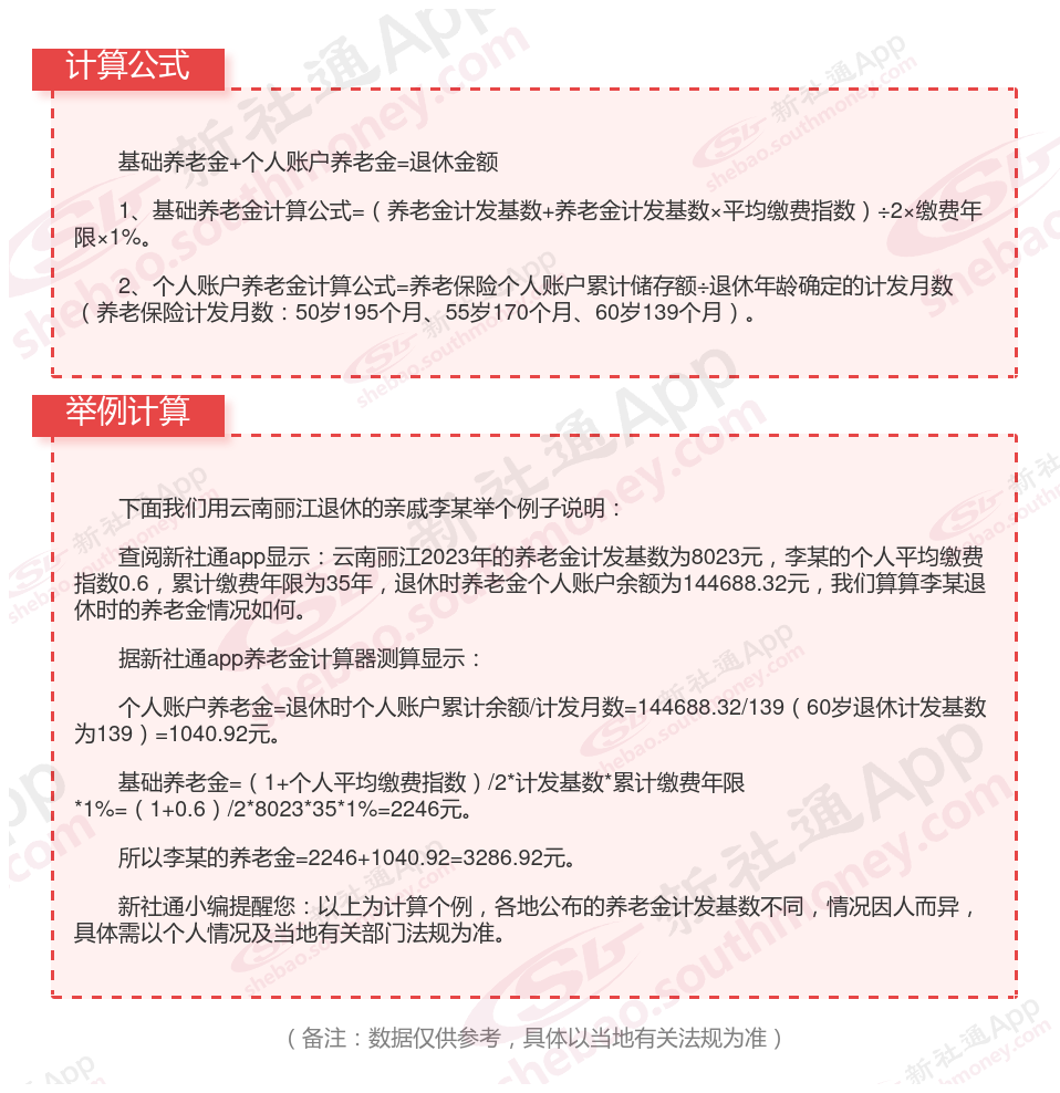 云南丽江养老金计算公式2024年计算方法(在线计算器)