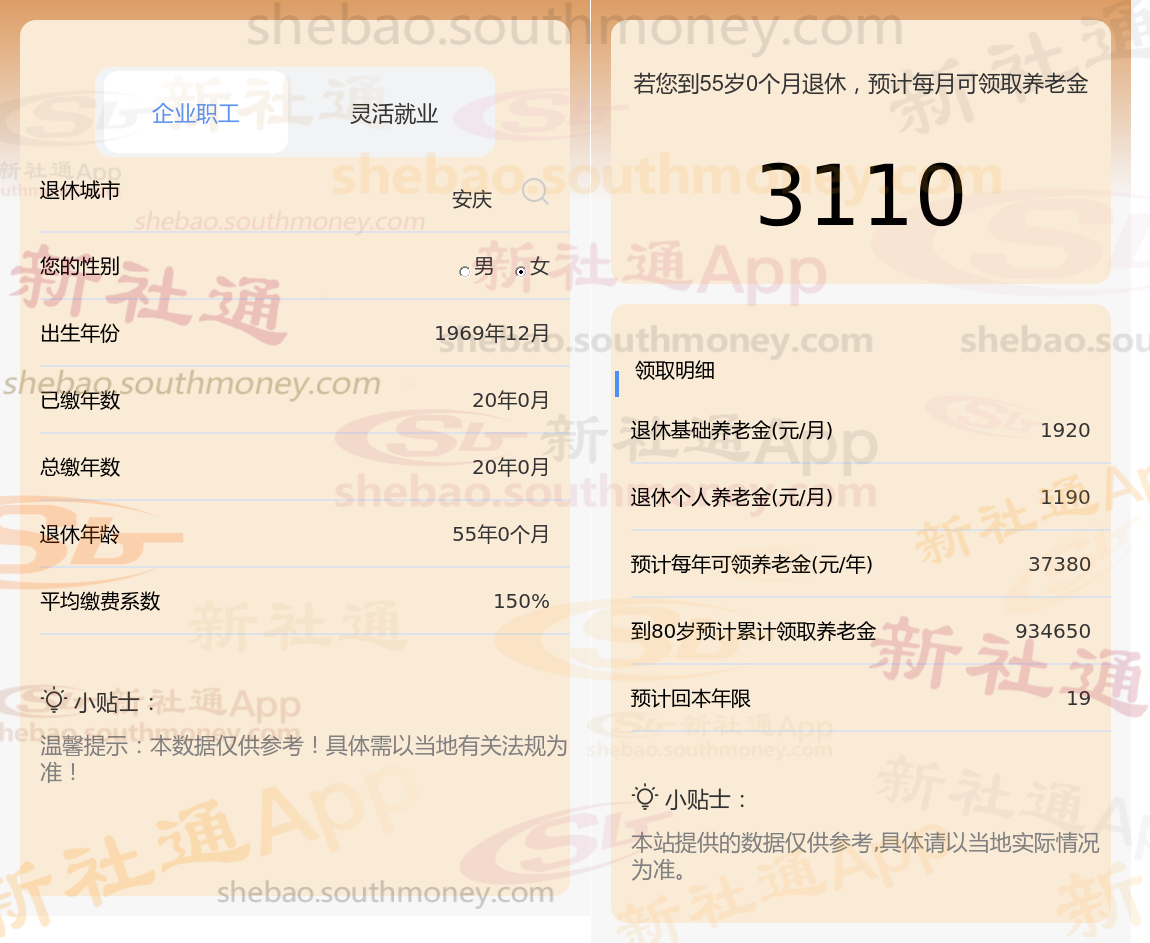 谢某,1969年出生于安庆,是一位拥有20年社保缴费记录的退休职工,缴费档次为150%。辛勤工作多年后,她迎来了退休生活。