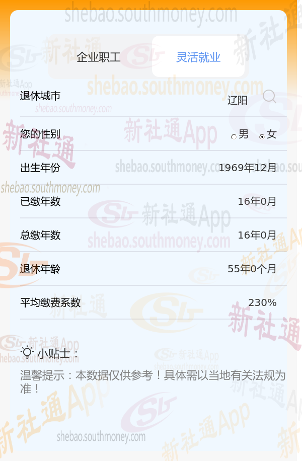 辽阳的一位女性灵活就业企业退休人员向我们咨询她的养老金情况。她出生于1969年,工龄为16年,期间她的养老保险一直是按照230%的档位进行缴纳的。她非常关心自己退休后每月能够领取的养老金数额,并询问我们,基于她的工龄和缴费档位,她的养老金是否能达到或超过3400元。