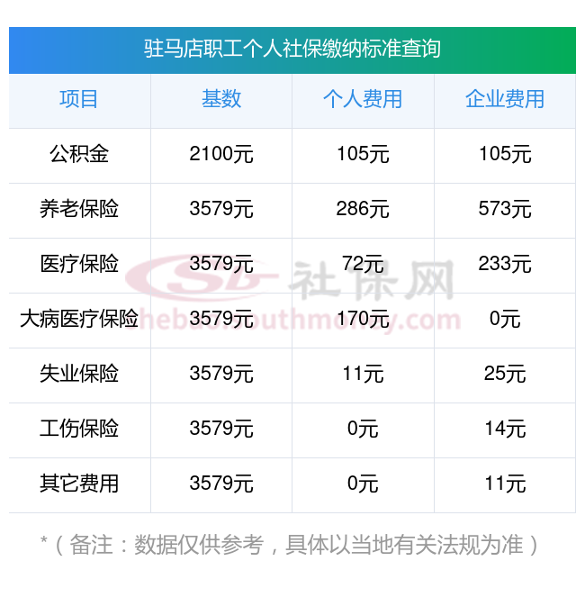 驻马店缴费社保比例一览 社保公司和个人各交多少?下表是2023-2024年驻马店社保费用明细参考,新社通app-社保缴费查询工具提供的最新数据如下: