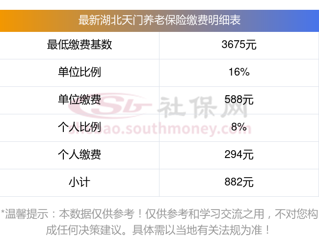 湖北天门养老保险缴费基数2023-2024年最新标准(最低)