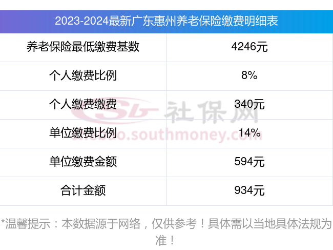 广东惠州养老保险缴费基数2023-2024年最新标准(最低)一个月要交多少钱?举例说明