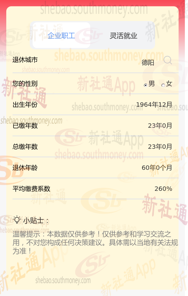 新社通app养老金计算器计算所得: