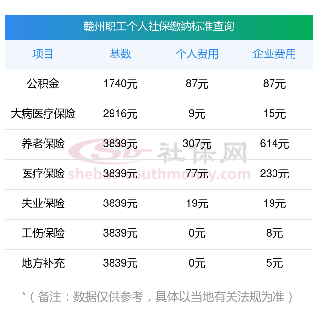2024年赣州社保缴费多少钱?下表是2023-2024年赣州社保费用明细参考,新社通app-社保缴费查询工具提供的最新数据如下: