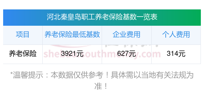 河北秦皇岛养老保险缴费基数2023年最新标准(最低)