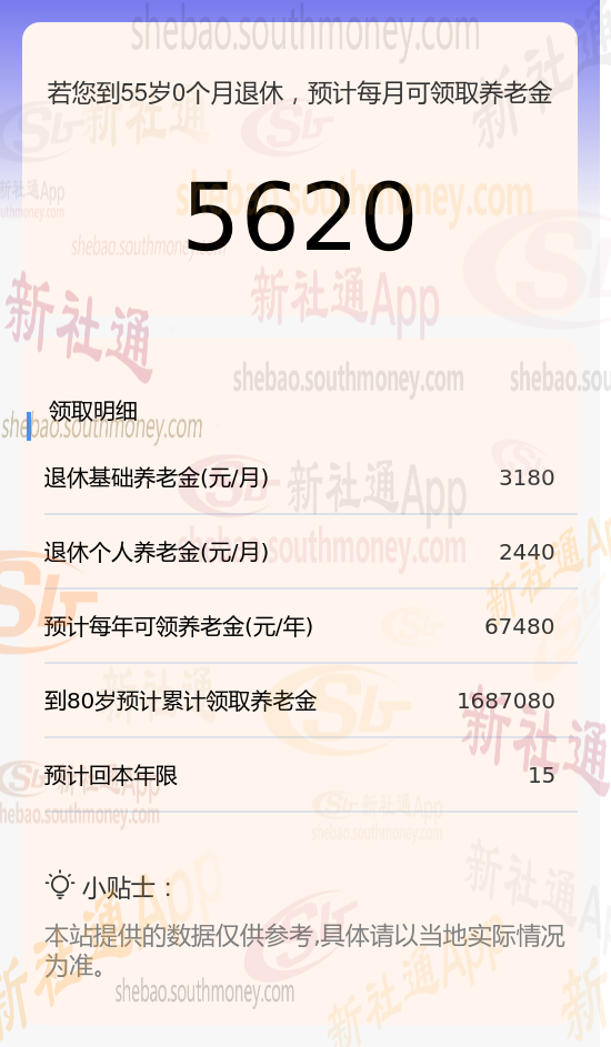 因此,她每月的总养老金金额为两者之和,即5620元。