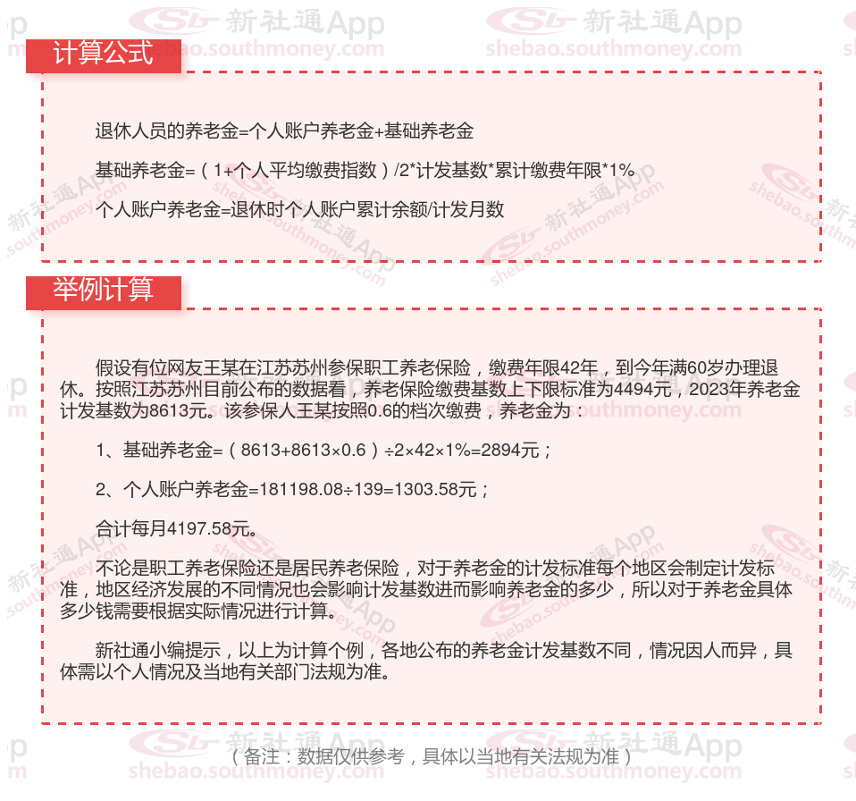 江苏苏州养老保险退休能领多少钱?(在线计算举例说明)