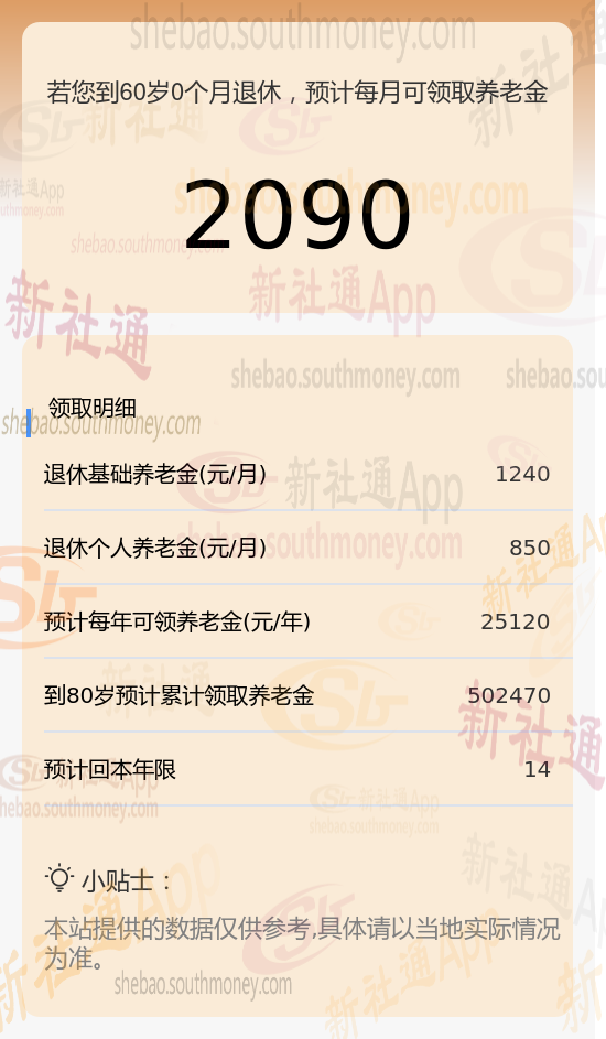 刘某,拥有长达18年的养老保险缴纳年限,其缴费档次一直维持在较高的100%水平。基于这些详细信息,我们使用了新社通app养老金计算器,并参考了当前的养老保险法规,对他未来的养老金进行了如下估算: