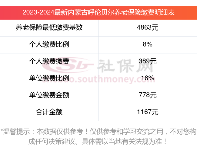 内蒙古呼伦贝尔养老保险缴费比例及基数标准2023-2024最新消息