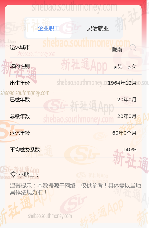 下面一起来分享个例子:秦某,社保缴纳20年要退休了,按140%档位缴纳,估算每月领取大约会比3100元多,不知道到退休时,可以领多少退休金?