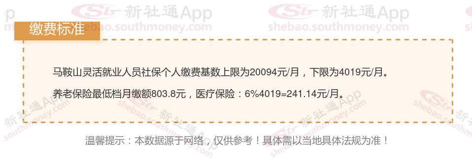 马鞍山社保缴费多少钱?下表是2023-2024年马鞍山社保费用明细参考,根据新社通app-社保缴费查询工具提供的最新数据如下: