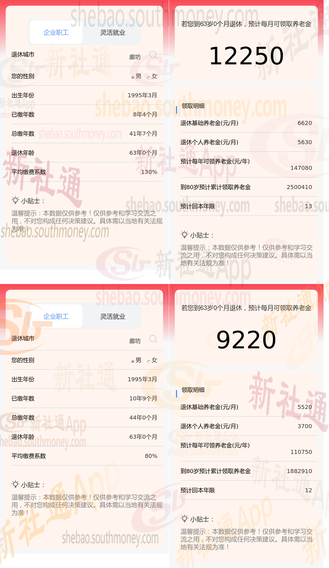 根据新社通app养老金计算器,轻松测算您的养老金!计算所得出:夏某与老魏的差别,缴费年限、缴费档位不同的情况下,差别12250-9220=3030元。