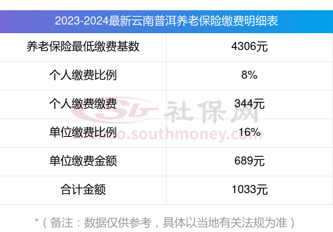 云南普洱养老保险缴费基数2023-2024最新标准,一个月要交多少钱?