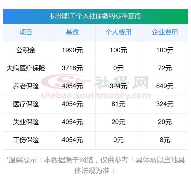 2024年柳州社保缴费多少钱?下表是2023-2024年柳州社保费用明细参考,如下: