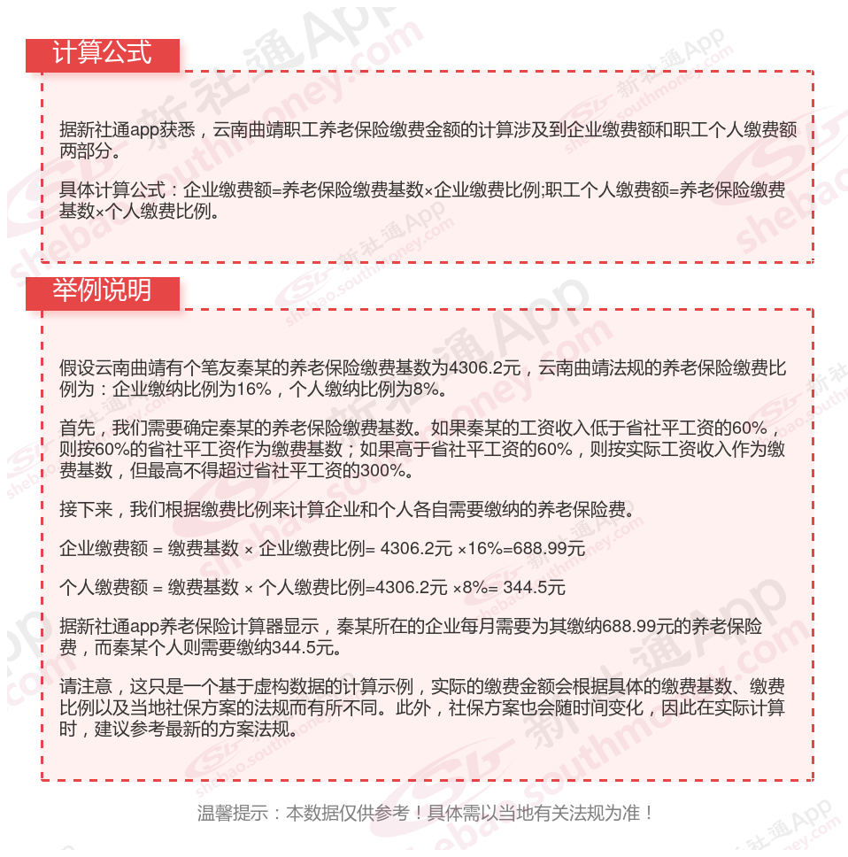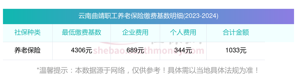 云南曲靖养老保险缴费基数2023-2024年最新标准(最低)要交多少钱一个月?