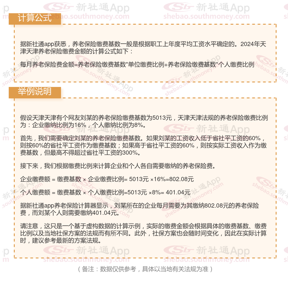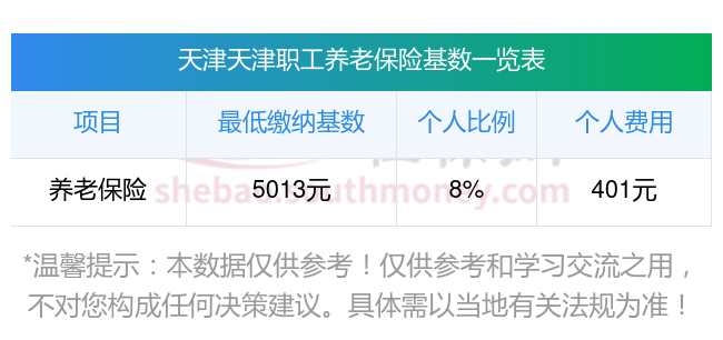 养老保险一个月要交多少钱?天津天津缴费基数2023-2024年最新标准(最低)