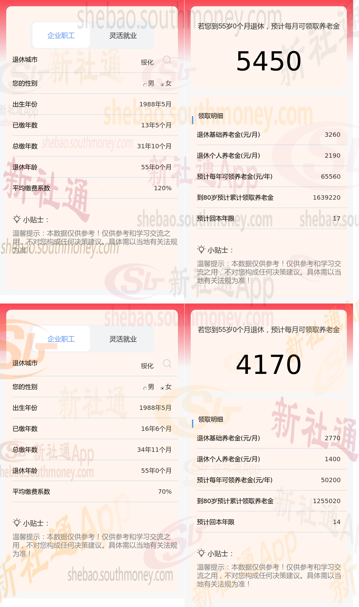 新社通app养老金计算器,轻松测算您的养老金!:两者之前差额5750-4420=1330元。
