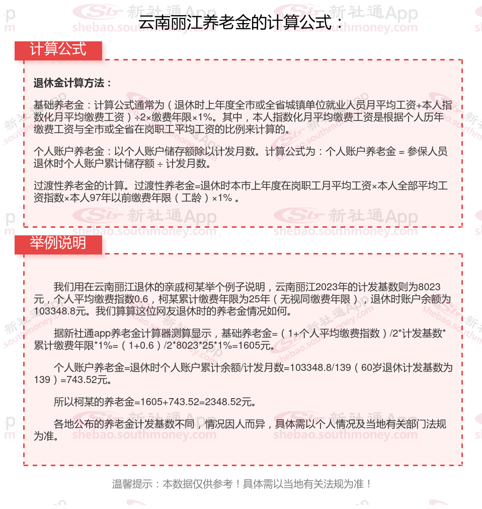 云南丽江养老金计算公式2024年计算方法(在线计算器)